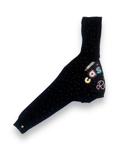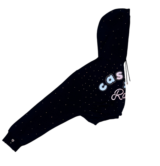 Pastel colors graphic full rhinestones - cropped black hoodie
