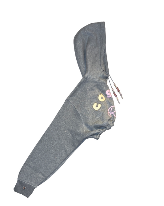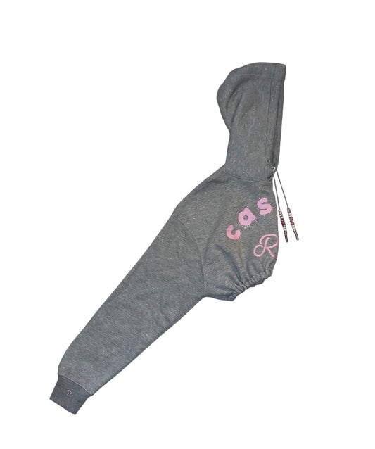 Pastel pink graphic full rhinestones - cropped grey hoodie