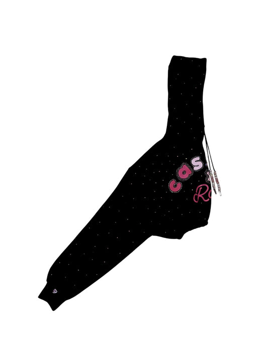 Blue/pink colors graphic full rhinestones - cropped black hoodie
