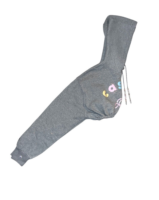 Pastel colors graphic full rhinestones - cropped grey hoodie